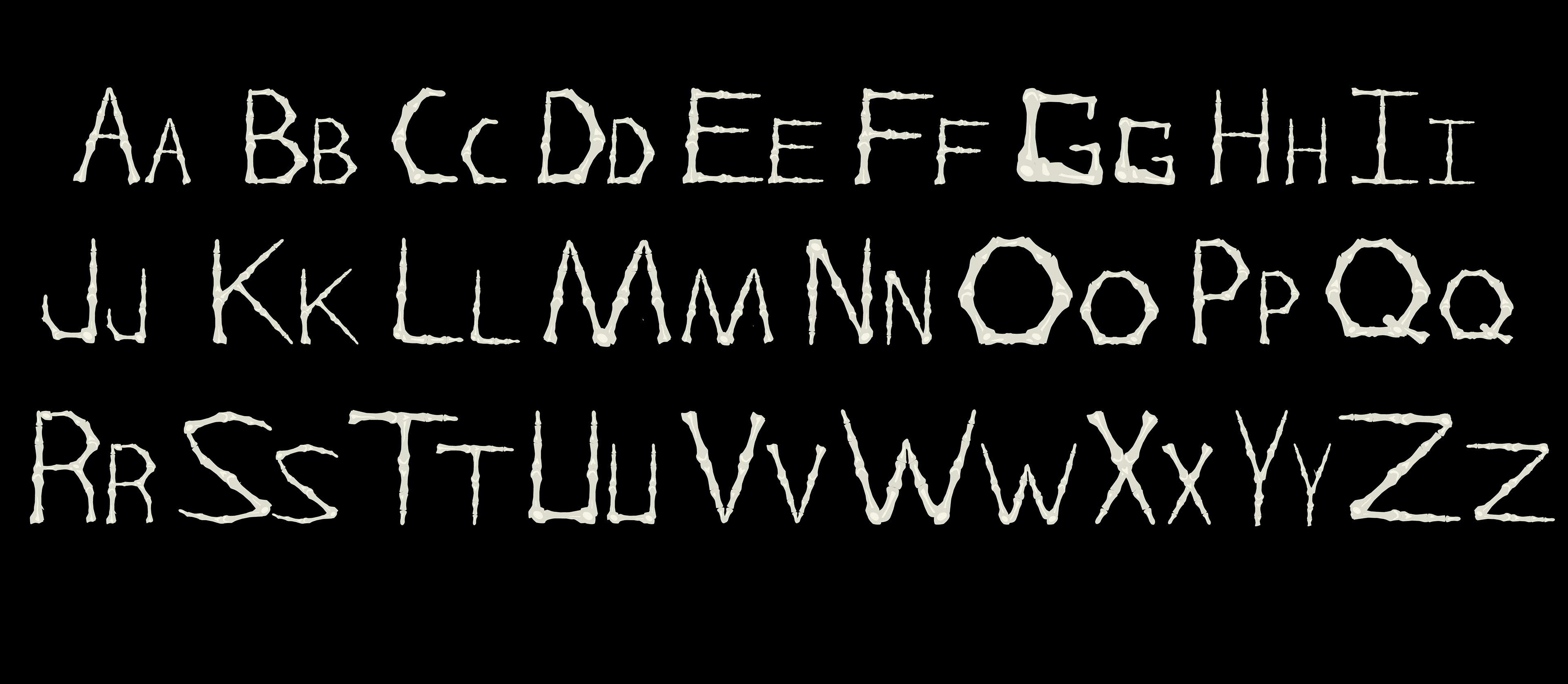 So this is a personal project of mine that I have been working on for the last couple of months and that I am very excited to finally reveal. A couple of months ago I was asked by a client to recreate a logo for him from scratch and I got the idea to create the logo text out of finger bones. From there when I was receiving feedback from people (including instructors as well) I was asked "Why don't you create an entire typeface using this concept?" So within the last couple of months I have been working on creating an entire typeface completely made from Finger Bones hence where I got the name from. Below will show the entire typeface now completed.