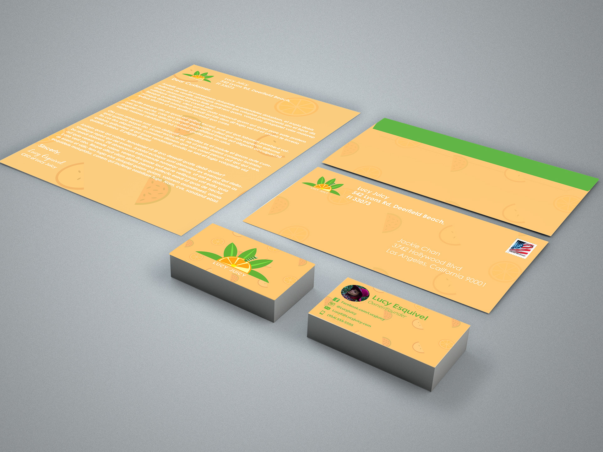 and to finish it off, I created an identity package including Business Card, LetterHead, & Envelope