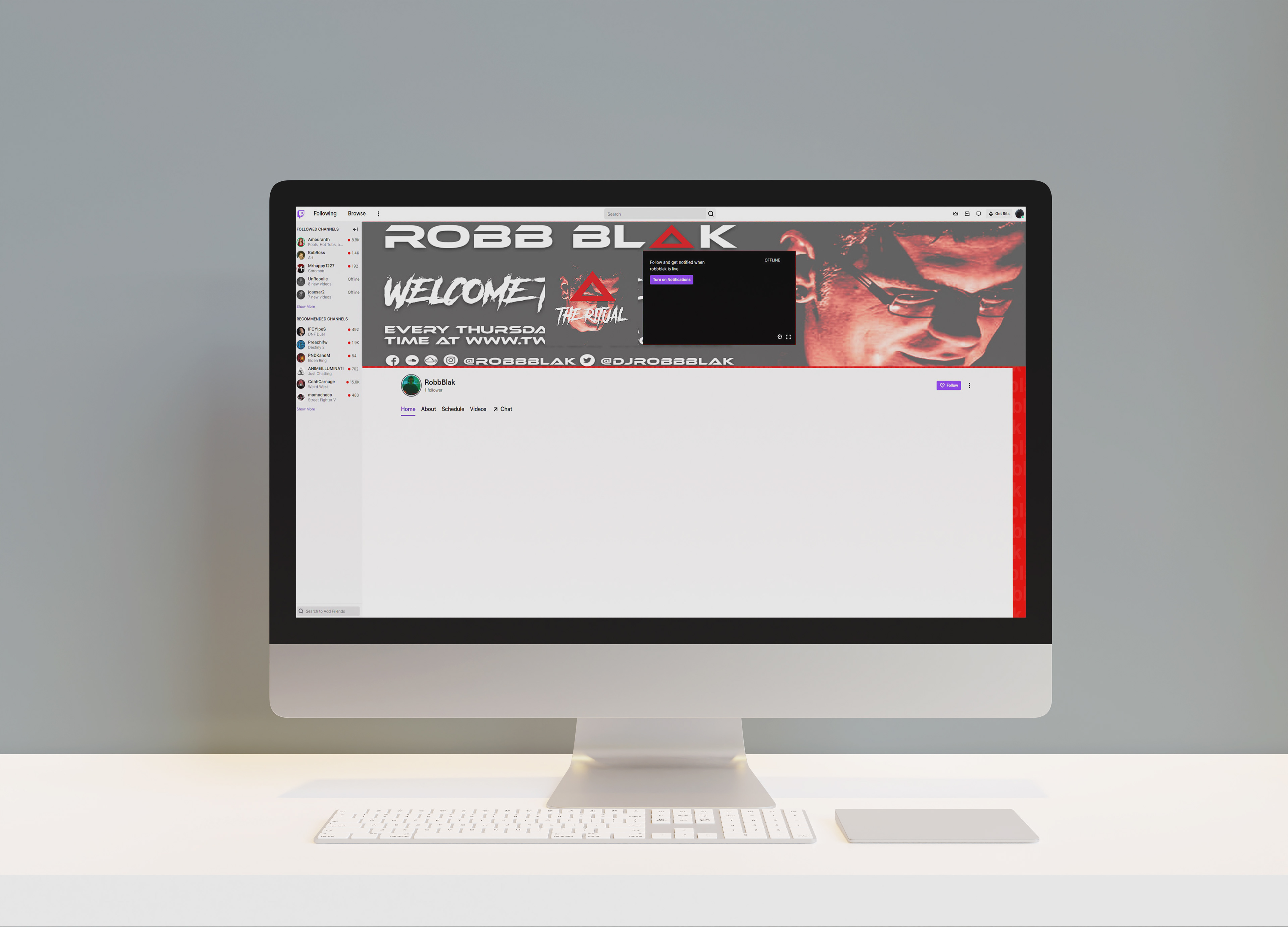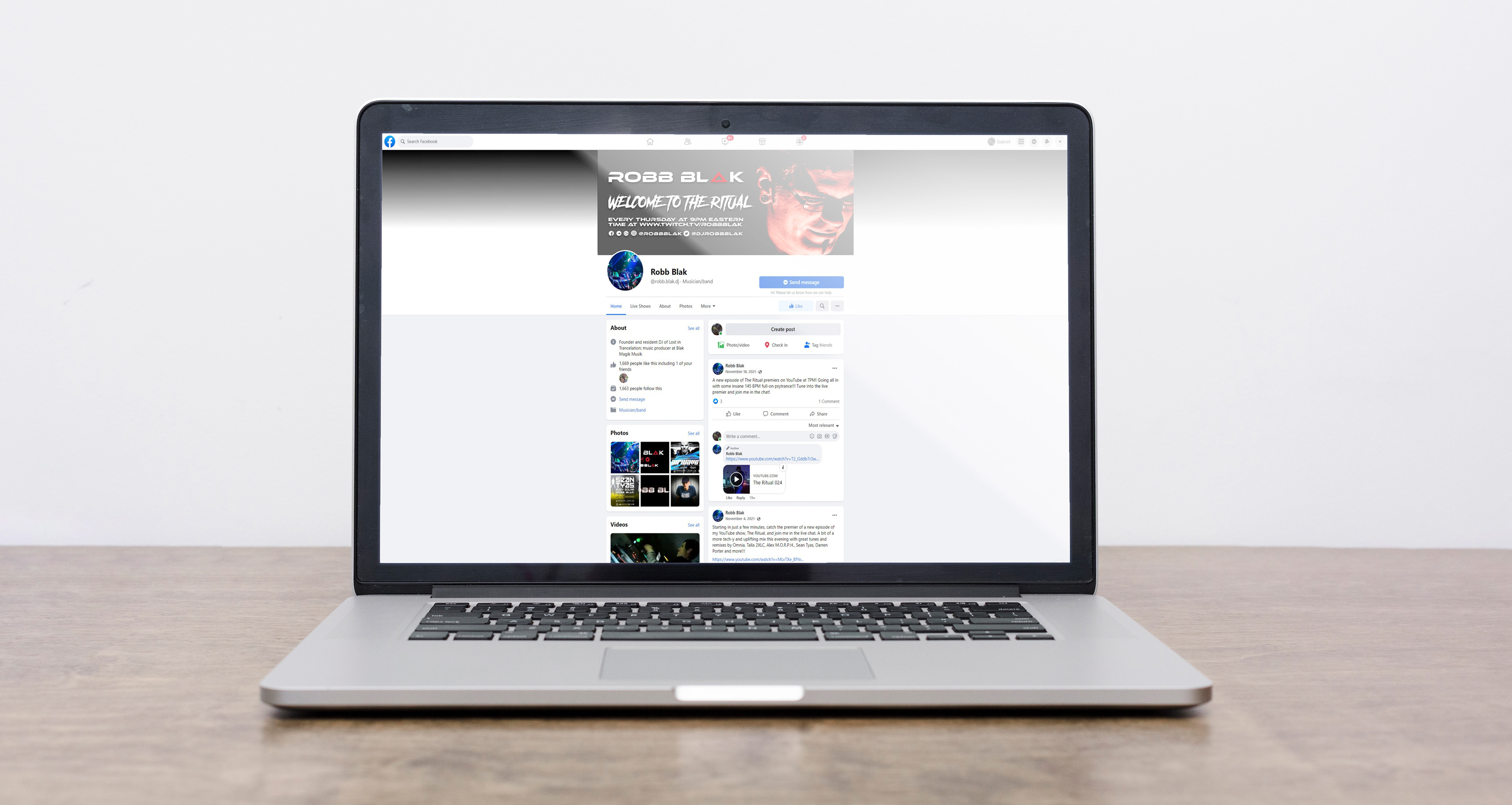 Robb Blak is a Trance/Techno Dj & Producer based out of Orlando, Fl. He also is a very close friend of mine so when he contacted me saying he needed rebranding done so he can prepare to relaunch his twitch stream, I immediately hopped on the opportunity. Below, I show his logo in black & white versions now that I provided him a vector version of his original logo design, a business card mock-up, as well as a desktop and laptop mockup for his social media accounts.